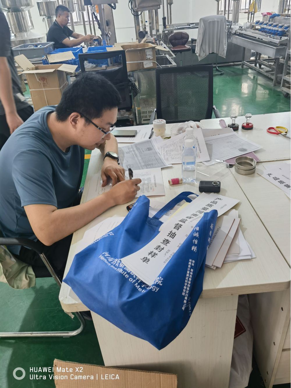 ?2023年 6月14日河南省市場監(jiān)督局委托河南省計量測試科學研究院付江紅、王偉鵬到商丘市清源儀表有限公司,對旋翼式冷水表、IC卡智能水表、電子遠傳水表進行年度定期抽檢工作。在商丘市清源儀表有限公司的積極配合下,保證抽樣的隨機性、真實性。在日常生產(chǎn)中,商丘市清源儀表有限公司嚴把質(zhì)量關(guān),做到每只出廠水表都符合國家質(zhì)量要求。