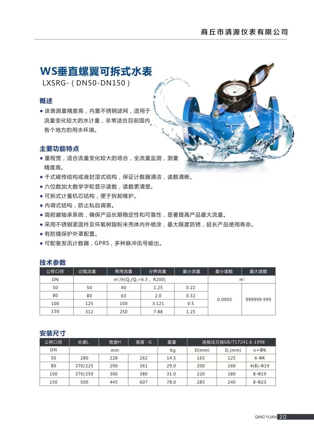 垂直螺翼式冷水表 DN150